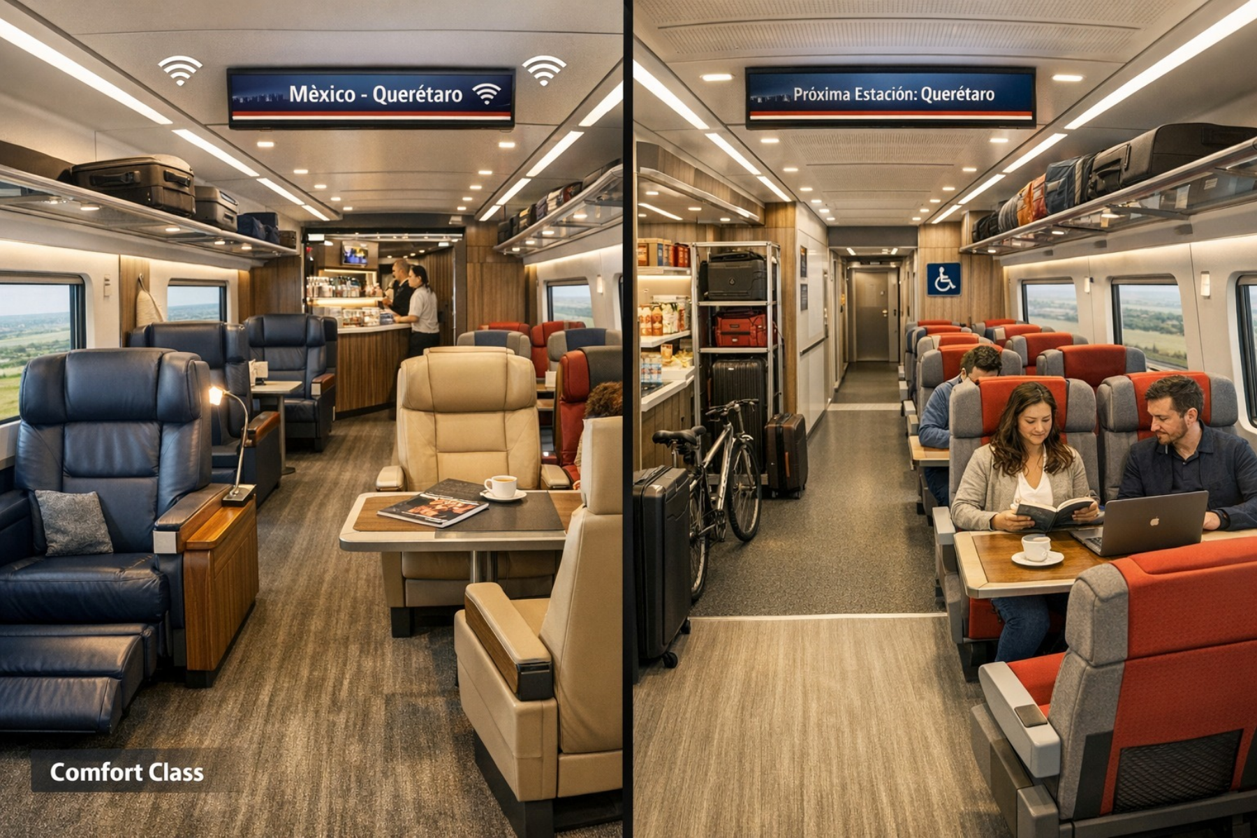 Se informó que los trenes incluirán áreas diferenciadas, conectividad digital y espacios adaptados para personas con movilidad reducida.